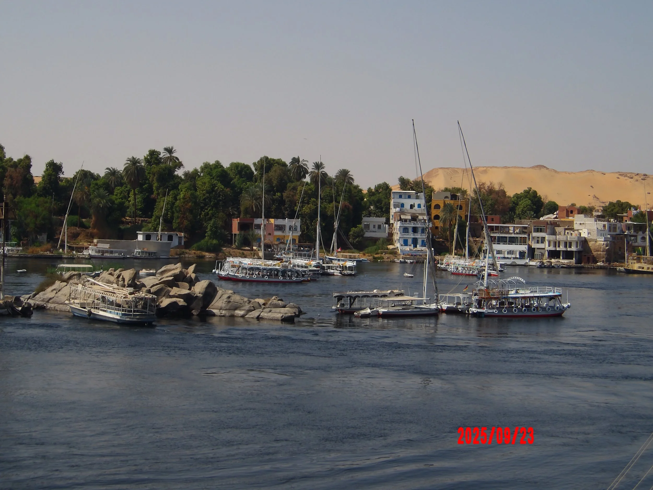 Volviendo a mi experiencia, al llegar a la isla del voluntariado, Isla Bigeh, me llevaron a lo que sería mi habitación. Era un cuarto de barro con techo de paja (mis papás dicen que eso parecía una cueva de Jesucristo), piso de tierra, una cama cubierta con mosquitero y una repisa de madera para mis cosas. Recuerdo que por las noches entre la paja del techo podía ver las estrellas, las mismas que milenios atrás guiaban a los sacerdotes del templo, y en la mañana me despertaba el sol que golpeaba mi cara, rápidamente elevando la temperatura a mi alrededor. Me sentí emocionado: no solo iba a vivir en una isla del Nilo, sino que lo haría en condiciones básicas, cercanas a la tierra, similares a cómo probablemente vivieron los antiguos egipcios.