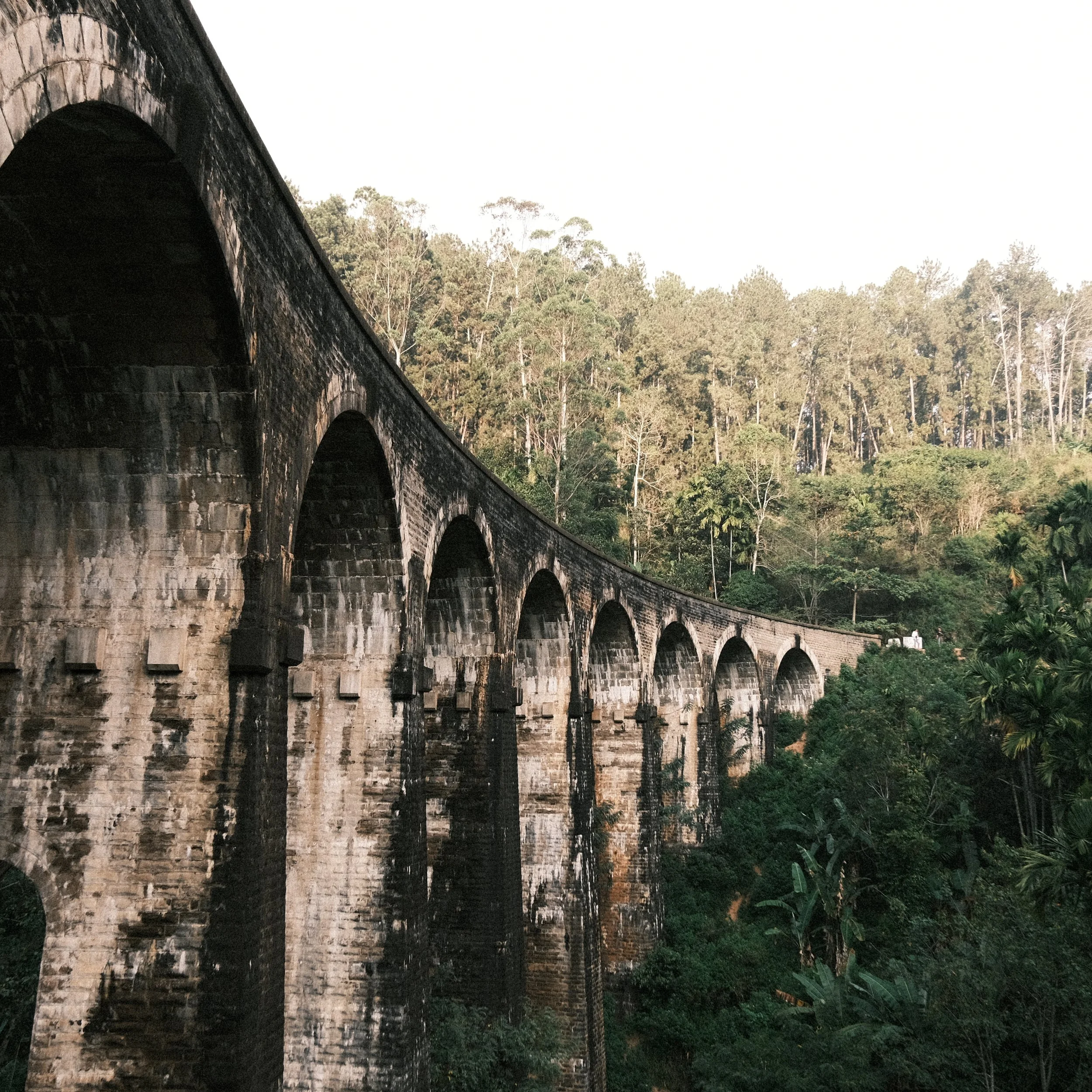 El Puente de los Nueve Arcos, cerca de Ella, es uno de los íconos de esta ingeniería. Fue construido durante el periodo colonial (inaugurado en 1921) utilizando principalmente piedra y ladrillo, sin refuerzos de acero, debido a la escasez de metal durante la Primera Guerra Mundial. Hoy, más que infraestructura productiva, es un mirador histórico rodeado de selva y plantaciones.