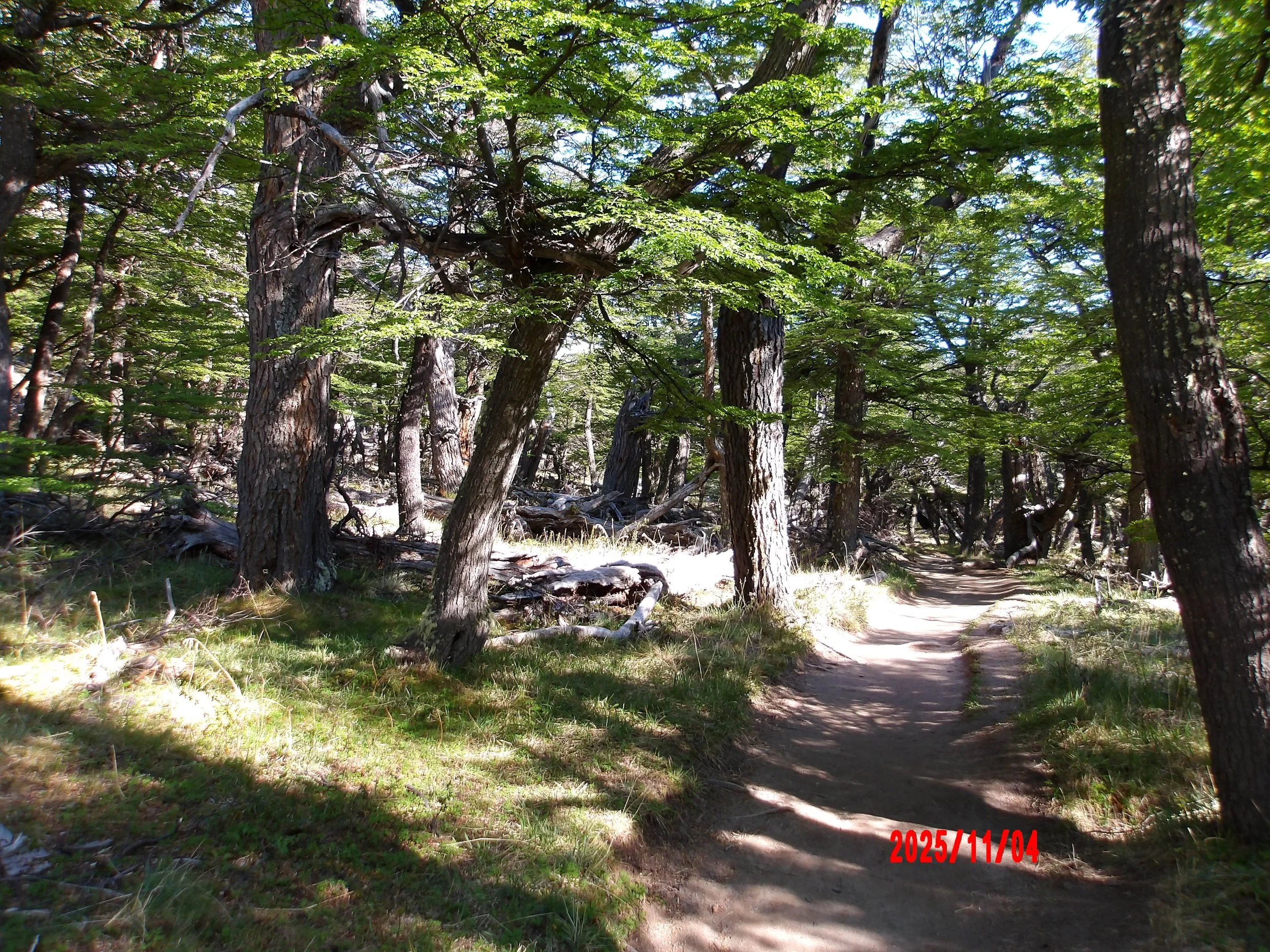 Después, el camino se adentra en el bosque y, poco a poco, el Monte Fitz Roy empieza a aparecer de frente.
