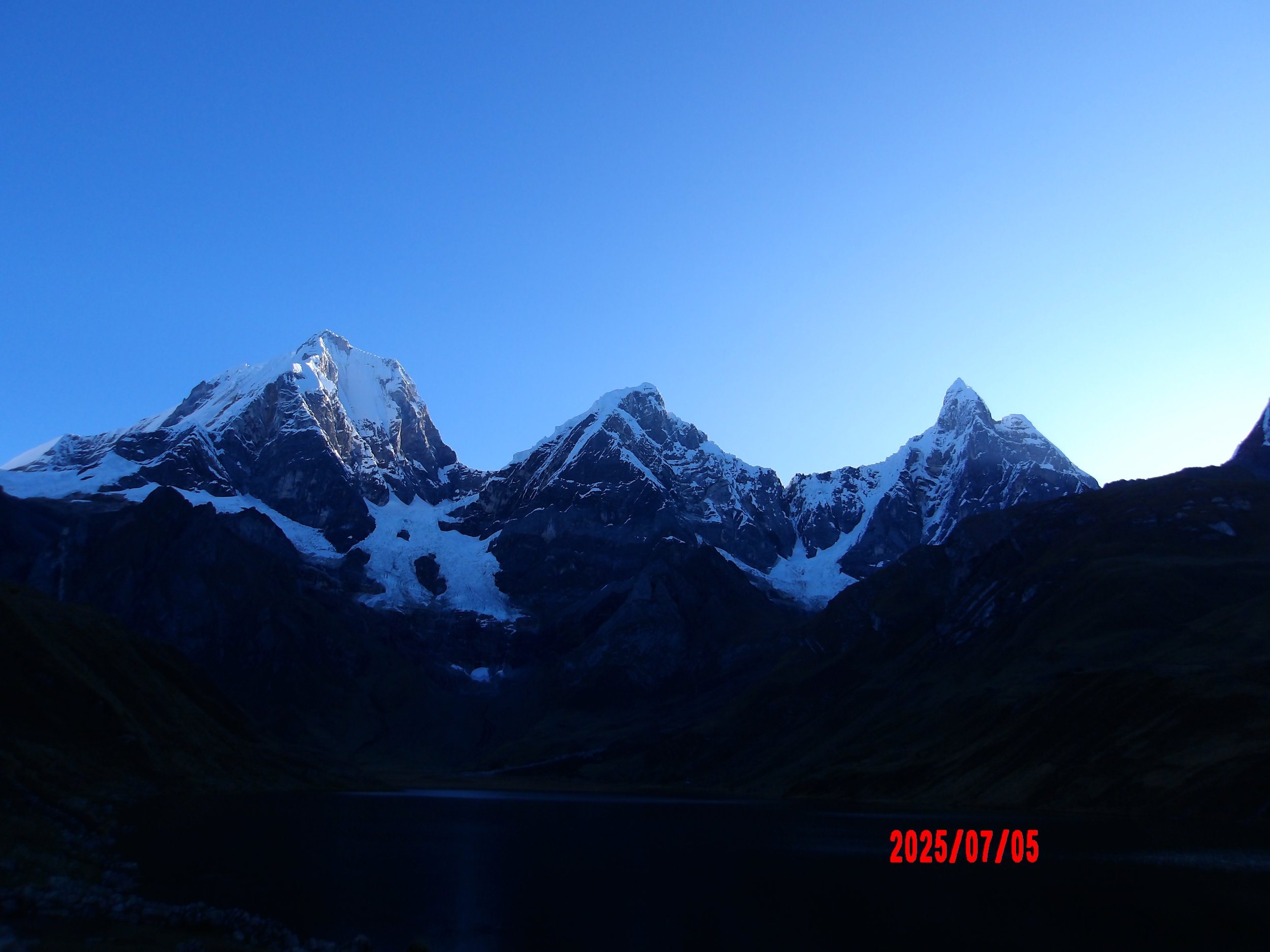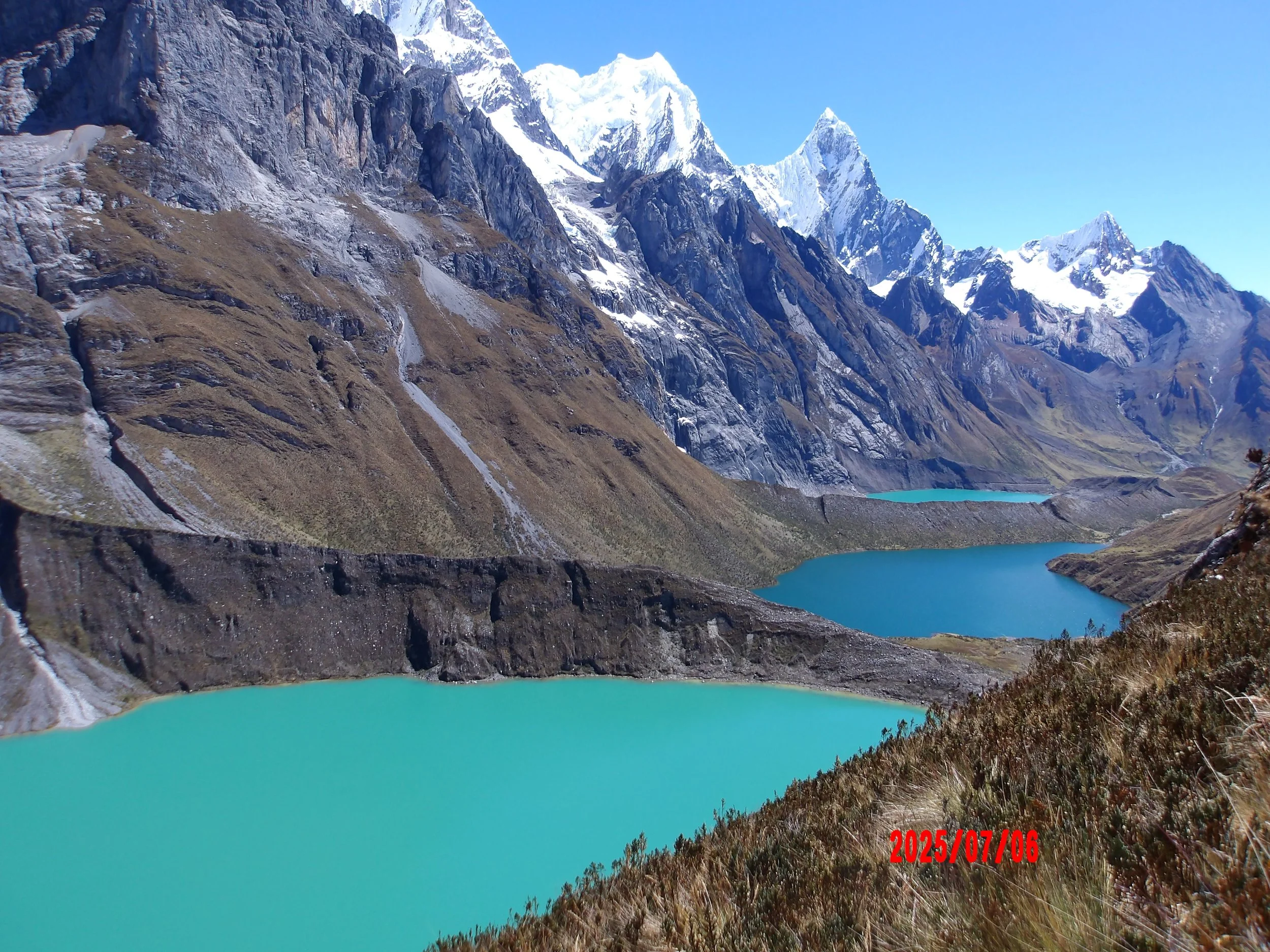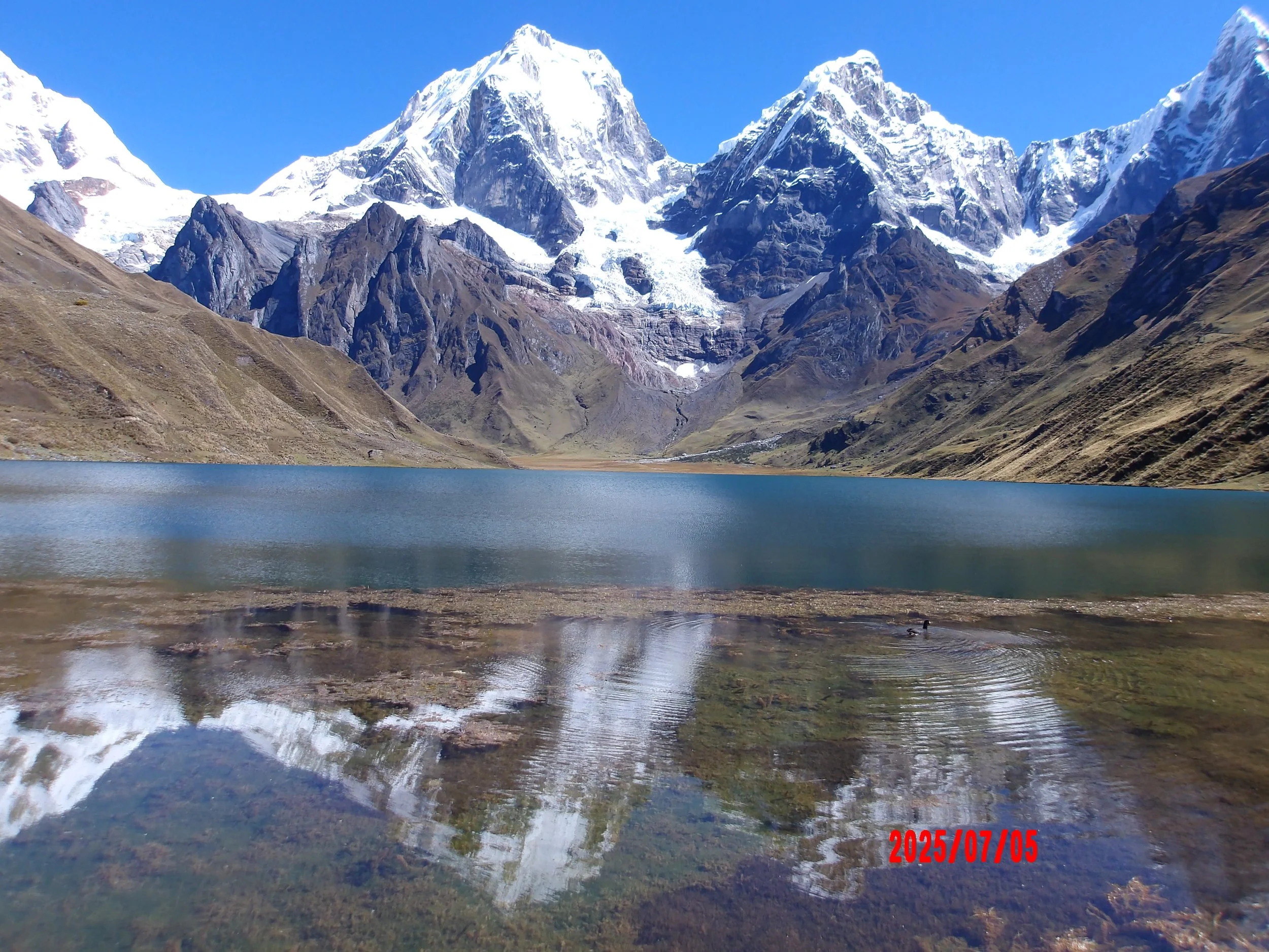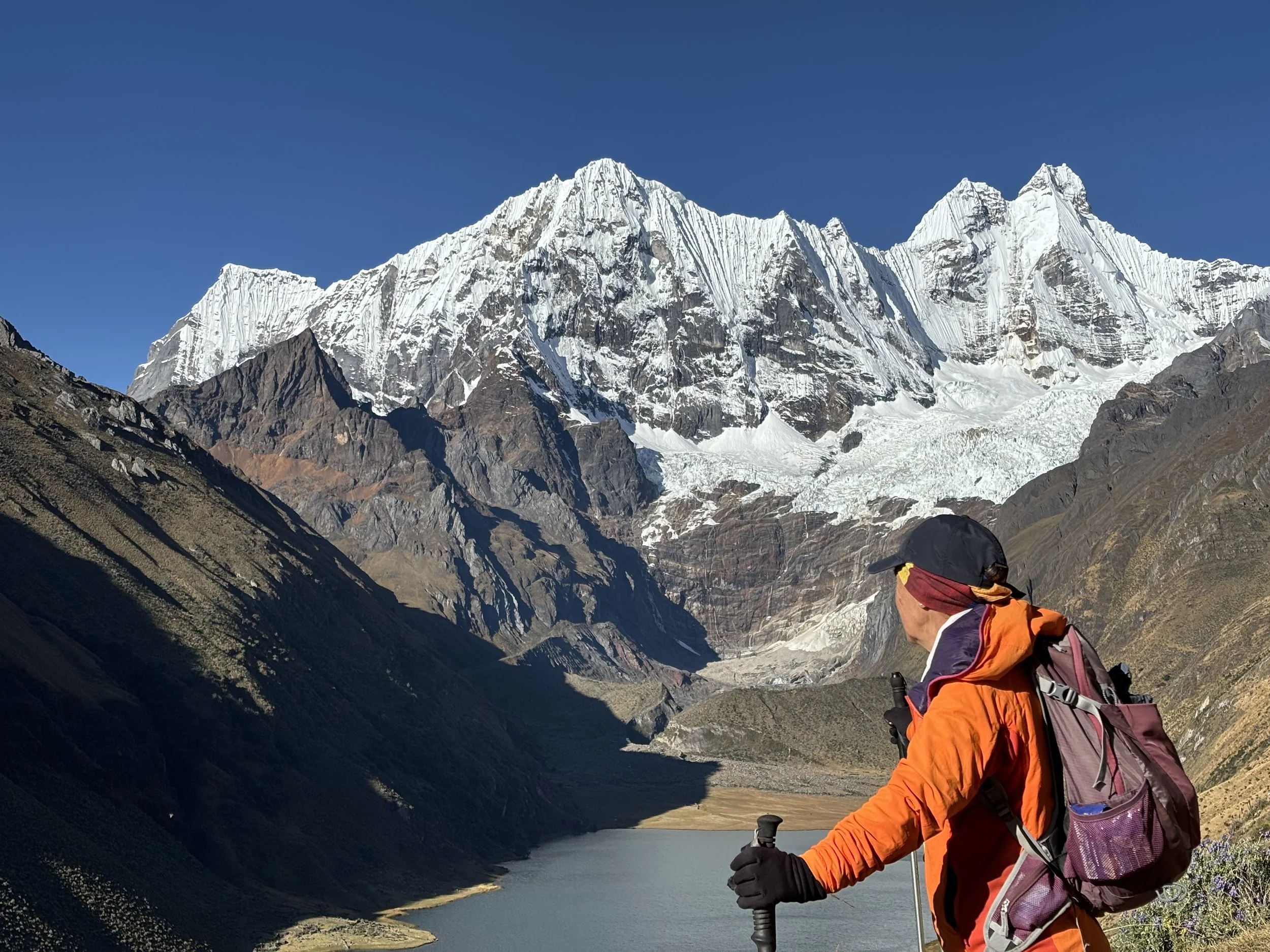 Estoy en el día 2 del trek de Huayhuash. Hoy llegamos a un punto que tiene que ser de lo más espectacular que he visto en mi vida. Es una laguna, a más de 4.000 metros de elevación, con cinco picos nevados al fondo. Me han dicho sus nombres como tres veces, pero no logro recordarlos. Solo sé que son sagrados… y que se siente.