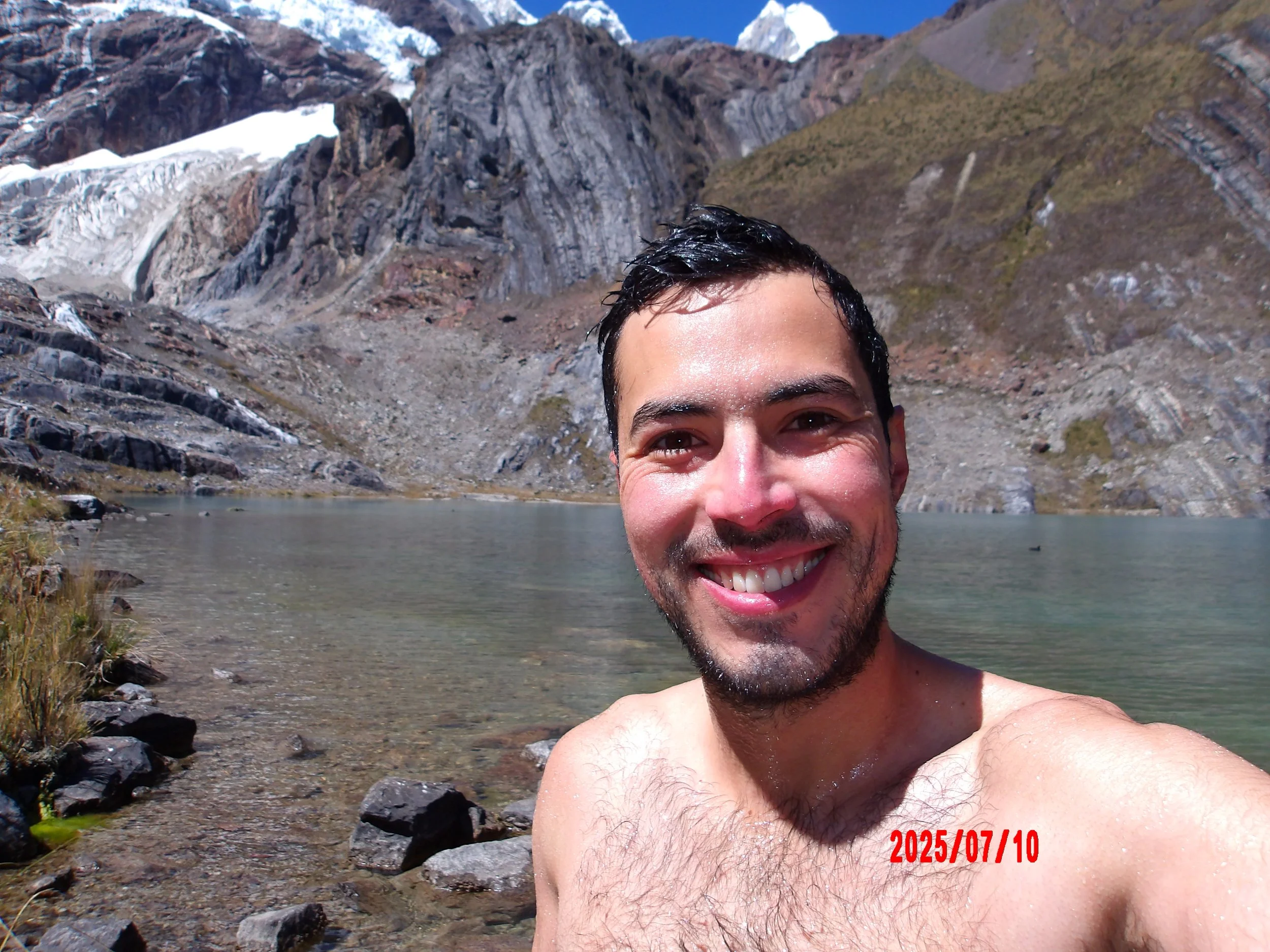 Entré al agua en calzoncillos. Estaba congelada, realmente helada. Pero me sentí conectado con las montañas, con los glaciares, con los Apus que nos cuidaron durante todo el camino.
