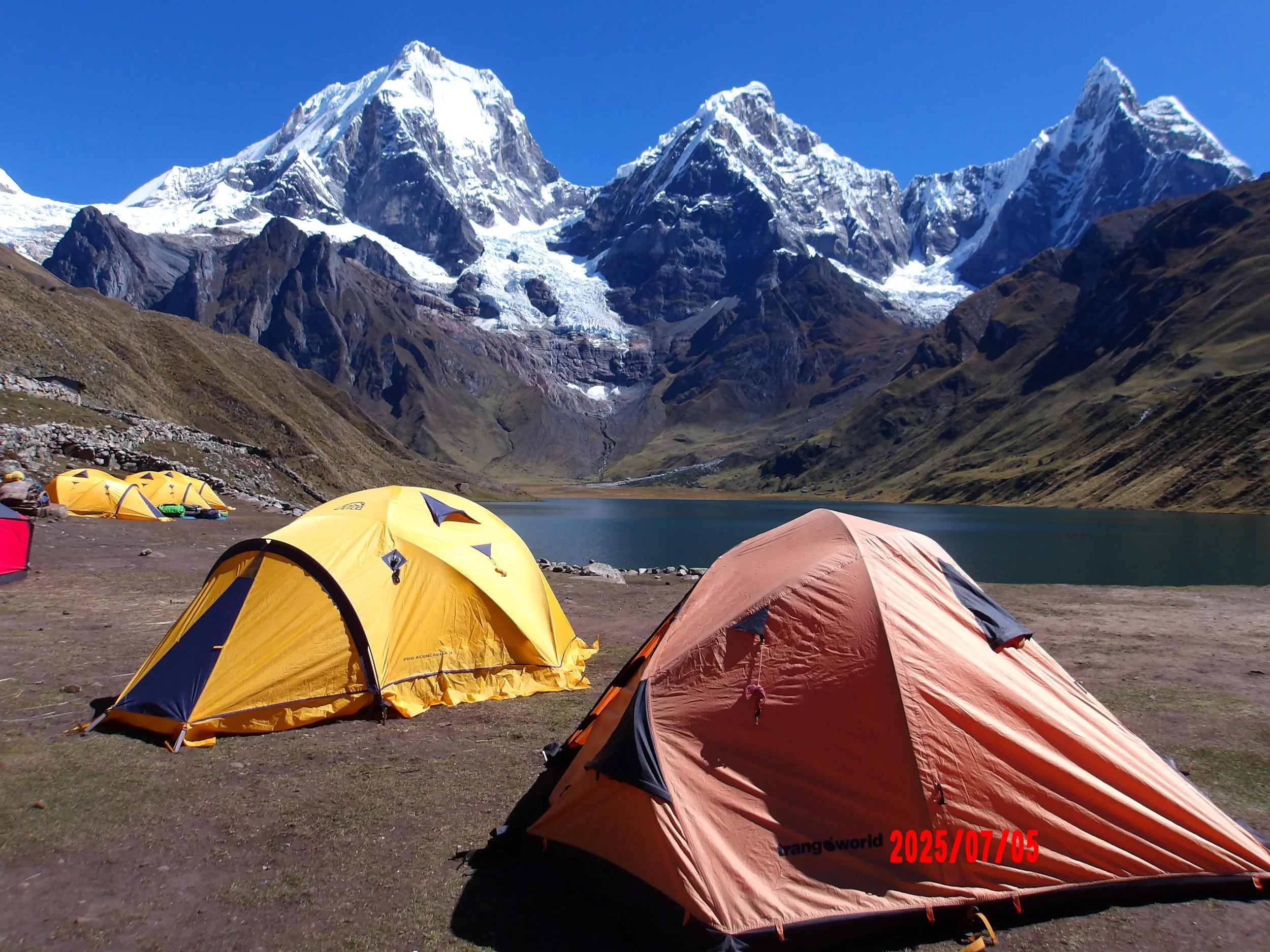Hoy tuvimos un día de descanso en el campamento de la laguna Jahuacocha. El día de ayer estuvo intenso: hicimos un paso difícil, mis compañeras ya están cansadas. Después del paso, el guía y yo seguimos por otra ruta que va por encima de la montaña y luego conecta con la principal. Fue más dura, pero tuvimos buen ritmo.